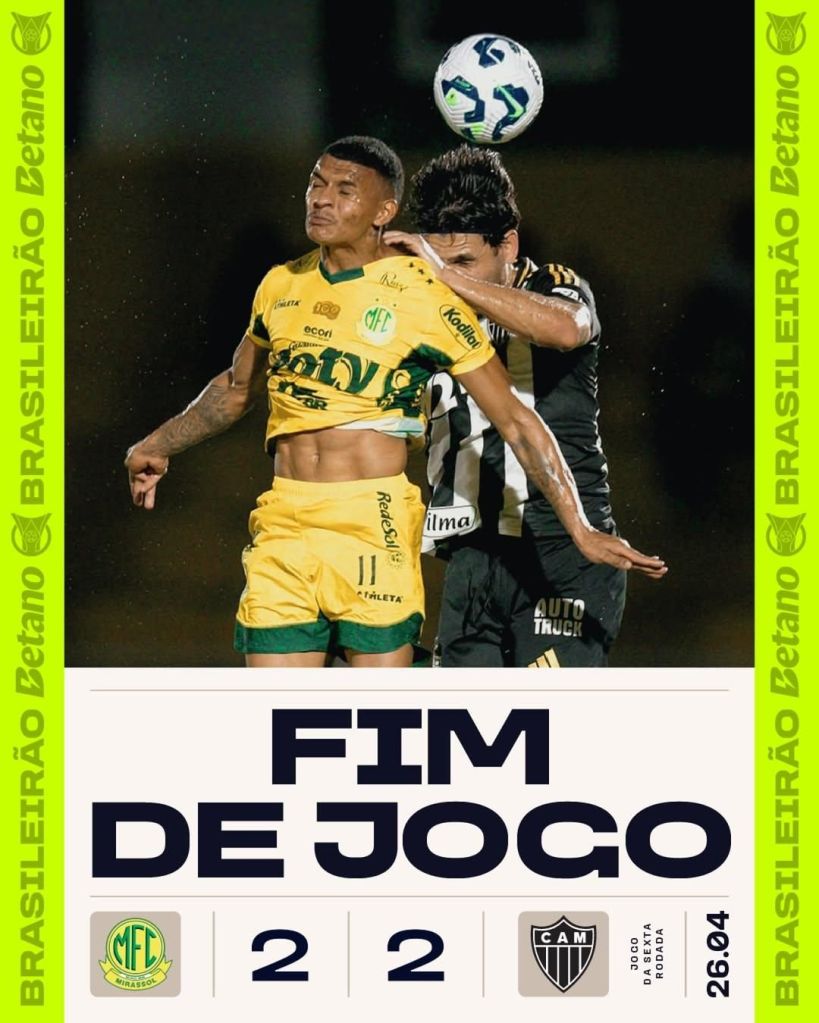 No Maião, sobrou emoção no duelo entre Mirassol e Atlético Mineiro. O leão saiu na frente, mas o galo virou o jogo, graças a uma exuberante exibição de Rony. Entretanto, no apagar das luzes, o Mirassol garantiu o empate.