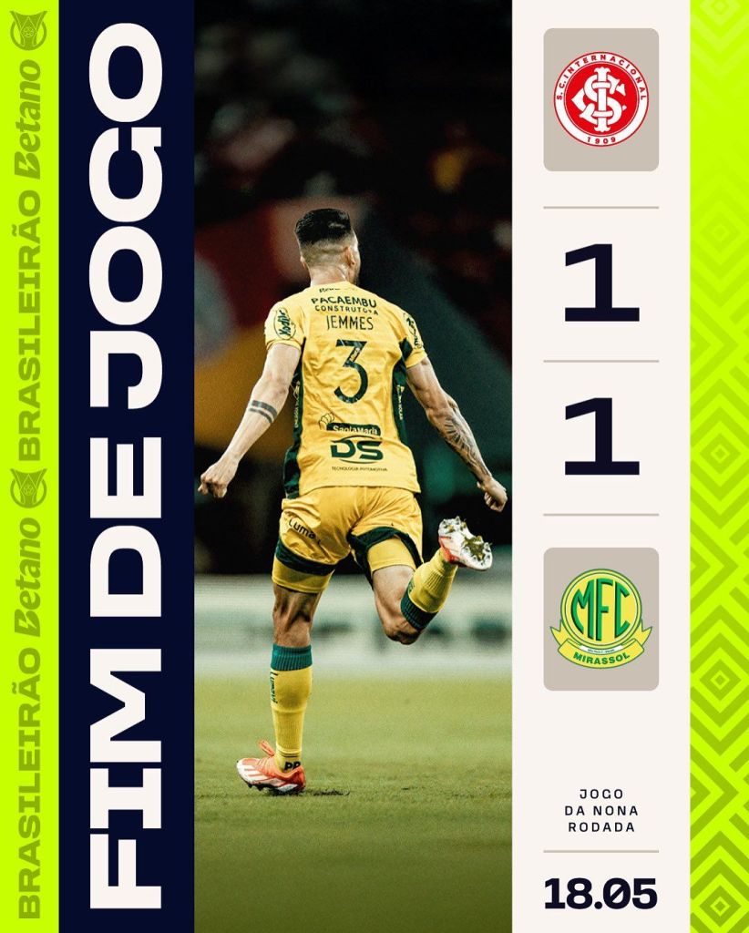 No Beira-Rio, Mirassol segue surpreendendo e quase vence o Internacional, mas o Colorado garante o pontinho na metade final do segundo tempo. As duas equipes seguem na metade final do jogo.