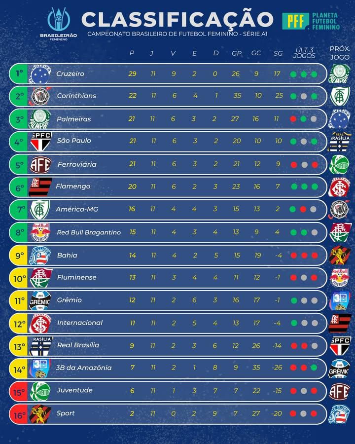 Invictas, as meninas do Cruzeiro atropelaram a Ferroviária e se consolidaram na liderança do campeonato, além disso as cabulosas confirmaram um lugar entre as equipes das quartas do Brasileirão. As Guerreiras Grenas se distanciam da ponta, mas seguem bem no G8