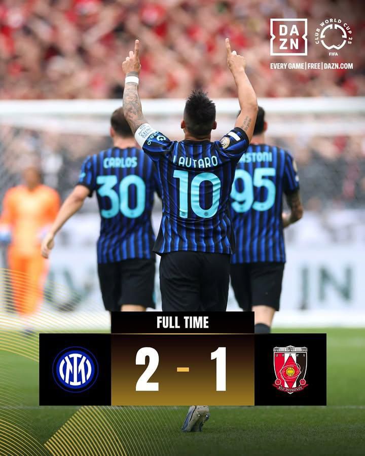 Já passava da metade do segundo tempo, quando Lautaro Martinez conseguiu empatar para a Inter. Nos acréscimos, com um gol de pinball de Carboni, aí sim, a Inter conseguiu sua primeira vitória no Mundial.