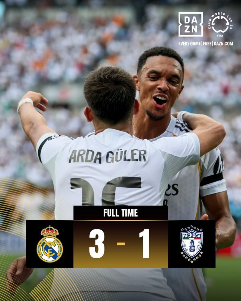 Com grande apresentação de Bellingham, o Real Madrid manteve-se com o controle do jogo. Quando o Pachuca ameaçou buscar algo além de se defender, tomou o terceiro gol. Os mexicanos ainda foram recompensados com um gol no fim, mas insuficiente para tirar a alegria do maior campeão Mundial.