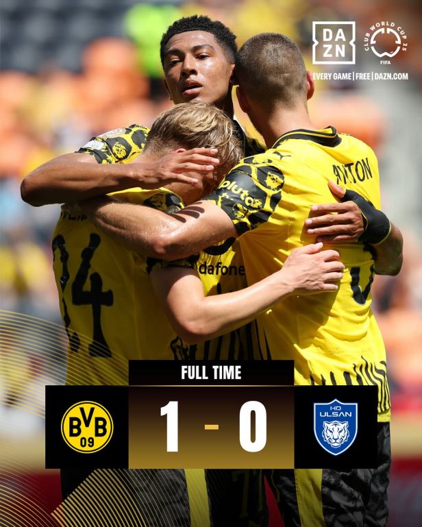 Foi um massacre, porém 1×0, entretanto, o suficiente para o Borussia Dortmund avançar na ponta do Grupo F do Mundial de Clubes 2025.