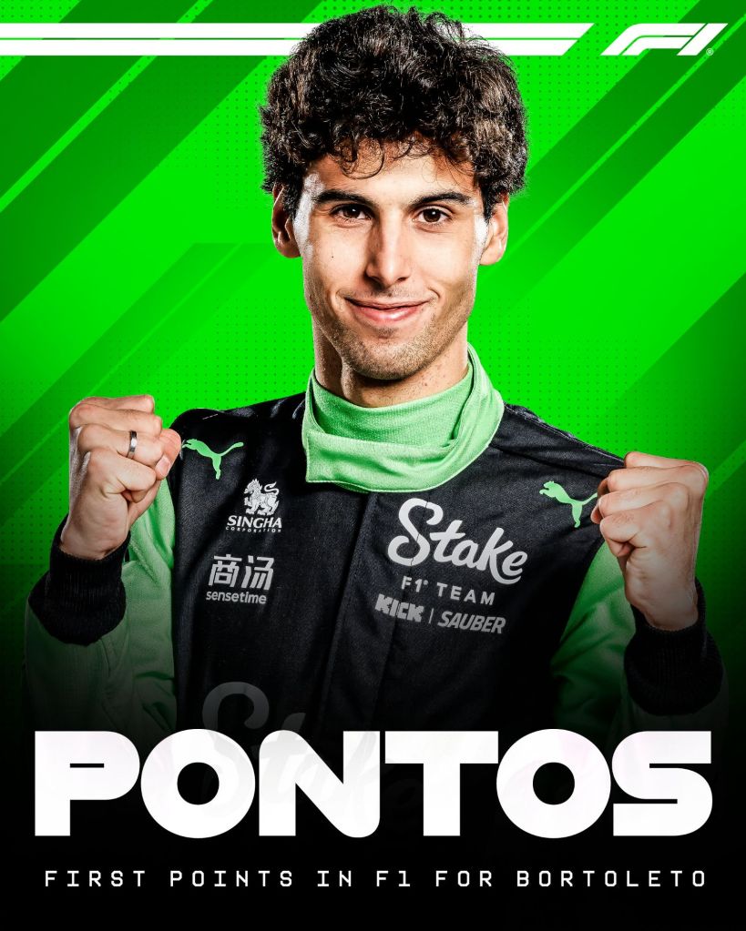 Gabriel Bortoletto pontuou pela primeira vez na Formula 1. O piloto brasileiro da Sauber não só salvou da batida entre Antonelli e Verstappen, como conseguiu ficar toda a prova entre os 10, chegando a está em 5⁰, durante uma janela de paradas. No fim, o brasileiro terminou em 8⁰, brigando pelo 7⁰, centímetro à centímetro com a lenda Fernando Alonso. Além disso, foi o vencedor do prêmio Piloto do Dia. Opinião clubista: se não fosse as McLaren chegar e a bandeira azul piar, certeza que Bortoletto teria ultrapassado seu chefe.