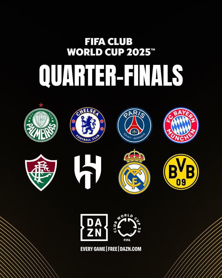 Vale ressaltar, o que teremos, à partir de Sexta (4): a revanche da final do Mundial de 2021, entre Palmeiras e Chelsea; a reedição da Final da Champions League de 2020 entre PSG e Bayern; a reedição da Final da Champions League de 2024 entre Real Madrid e Borussia Dortmund, além do duelo inédito de “exterminadores de europeus” entre Fluminense e Al Hilal.