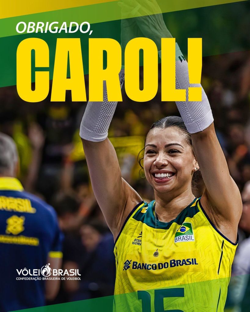 Até agora não li o anúncio, mesmo assim vou publicá-lo, não li porque não tenho coragem De acreditar que Carol saiu da seleção. É um processo natural, Mas a tristeza é grande. A única coisa que posso dizer é que Carol fez história, e com certeza será lembrada como uma das maiores do vôlei feminino brasileiro. Obrigado , Carolana !