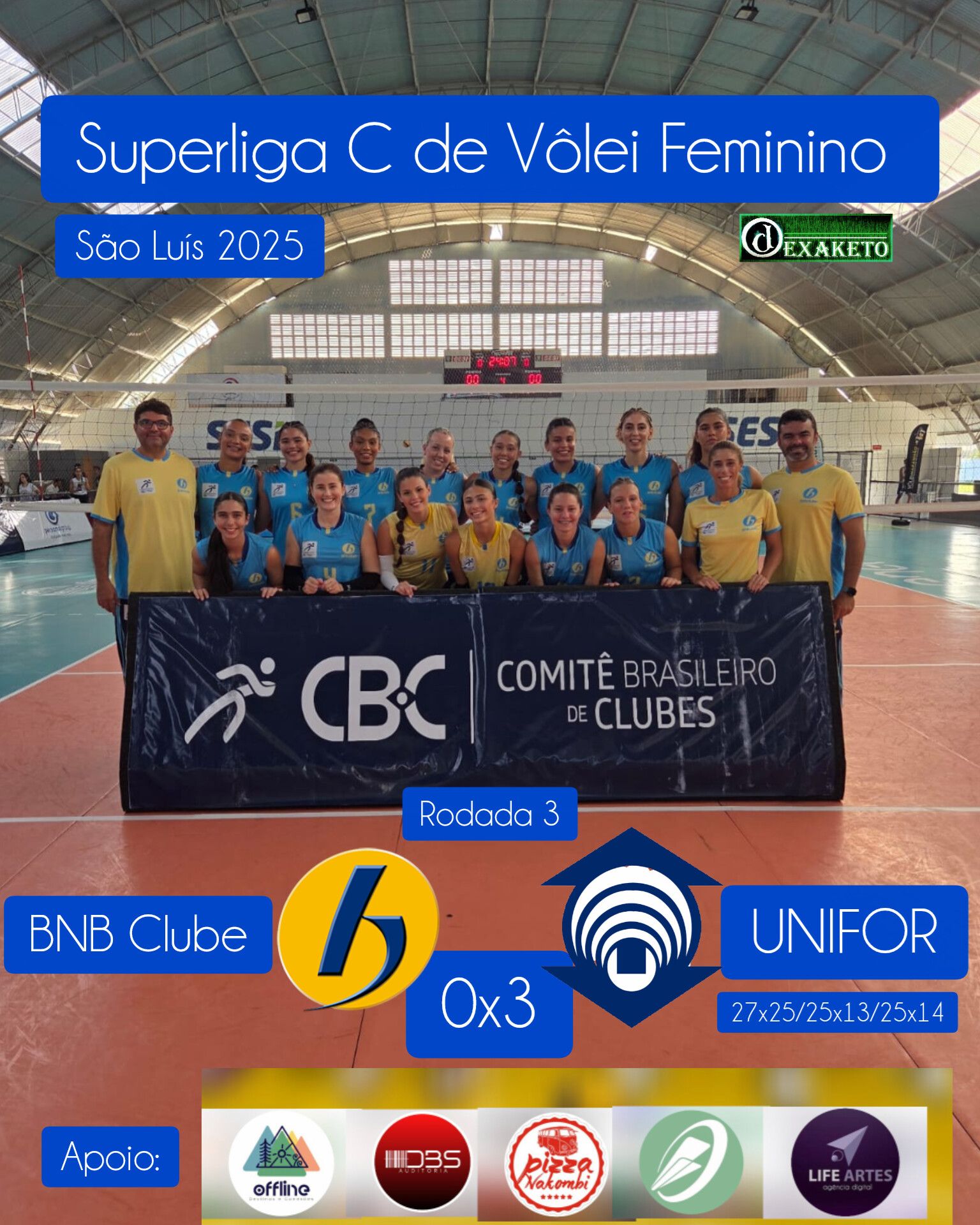 Dessa vez não deu! Infelizmente, as meninas do BNB Clube perderam para fortíssima equipe da UNIFOR pela 3ª Rodada da Superliga C Feminina 2025.