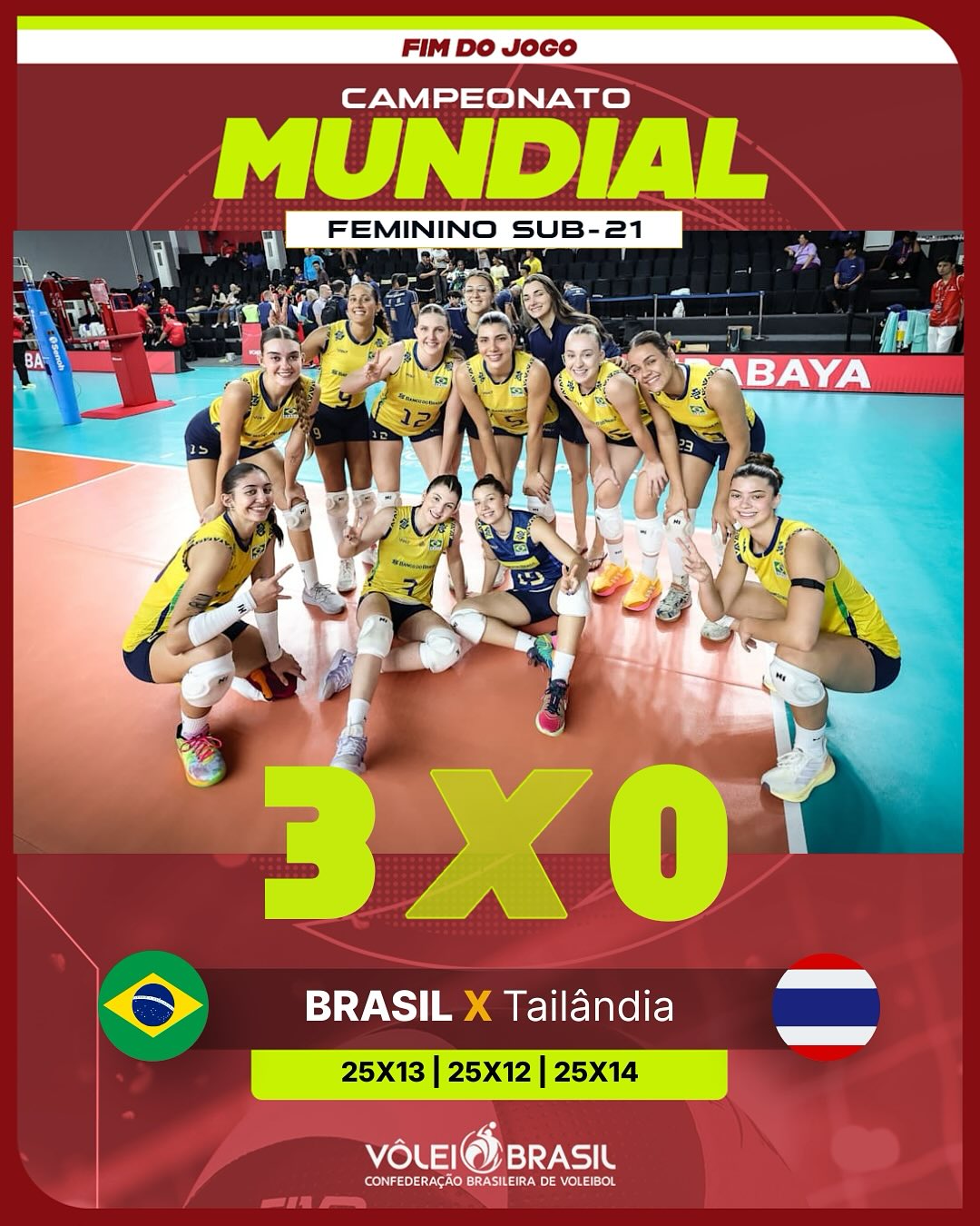 Pela 3ª Rodada do Mundial Sub-21 de Vôlei Feminino, as meninas da Seleção Brasileira deram um verdadeiro baile sobre a Tailândia, garantindo a vaga nas Oitavas de forma antecipada.