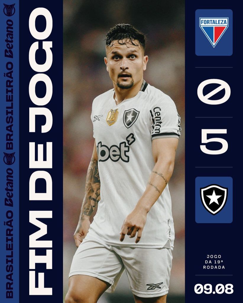 No Castelão, o Botafogo meteu uma peia histórica no Fortaleza. O alvinegro dá show e aproveita bem da expulsão de Gustavo Mancha, jogador do Laion, ainda nos primeiros minutos do jogo. O impiedoso Fogão segue fugando no cangote do G4. Enquanto o tricolor, segue de chamego com o rebaixamento.