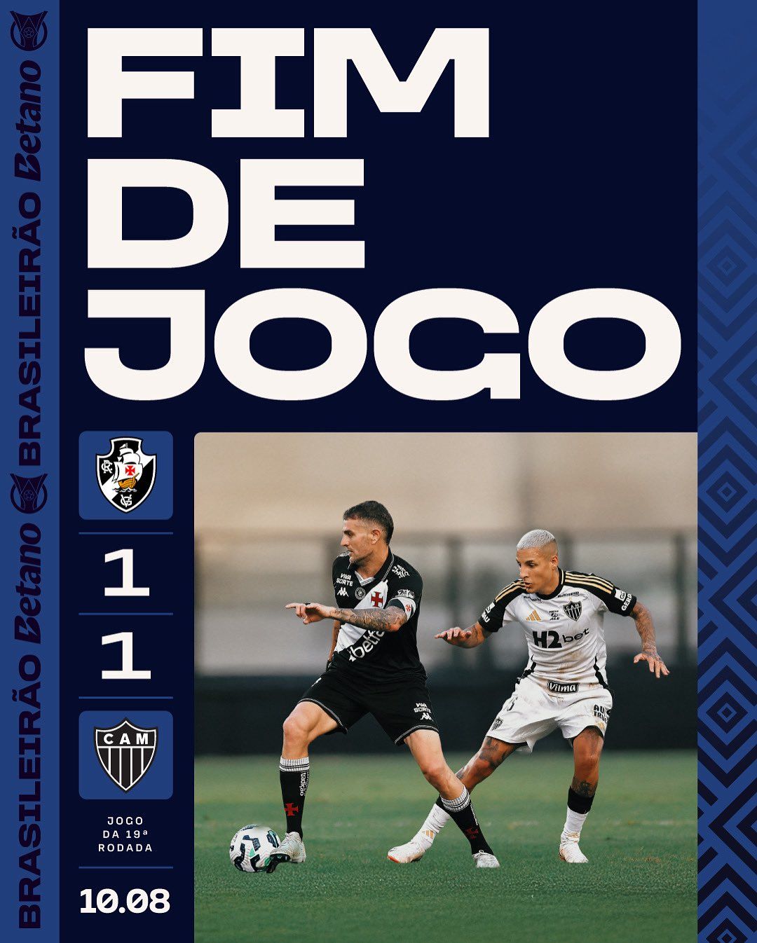No São Januário, o Vasco viu Gabriel Menino abrir o placar para o Atlético Mineiro com menos de 30 segundos. Entretanto, conseguiu empatar, de pênalti, com Vegetti. O empate foi ruim para ambos, visto que o Galo permaneceu no meio da tabela, enquanto o Vasco se manteve no Z4.