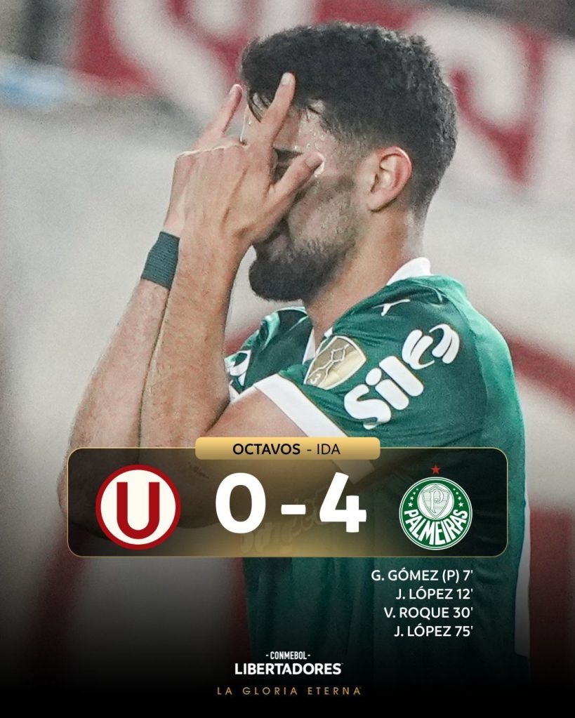 Em 30 minutos, o Verdão resolveu sua vida em Lima. Com um jogo digno de um tricampeão continental, o Palmeiras goleou o Universitário, como visitante, e fica muito próximo de retornar às Quartas da Libertadores.