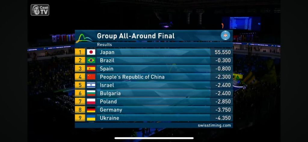 Com 55.250 pontos conquistados no Conjunto Geral, ou seja, na soma de 27.400 do conjunto Misto e 27.850 no Conjunto Fitas, o Brasil conquistou a inédita Prata, ficando atrás apenas do Japão, que somou 55.550 pontos.