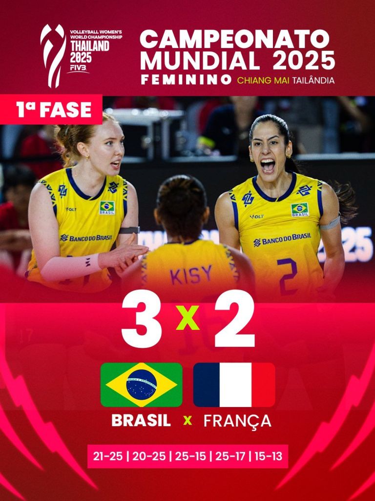 No segundo jogo da seleção brasileira no Mundial de Vôlei Feminino, passamos um susto, mas conseguimos uma vitória heroica diante a França. Com o resultado, o Brasil está nas oitavas do Mundial.