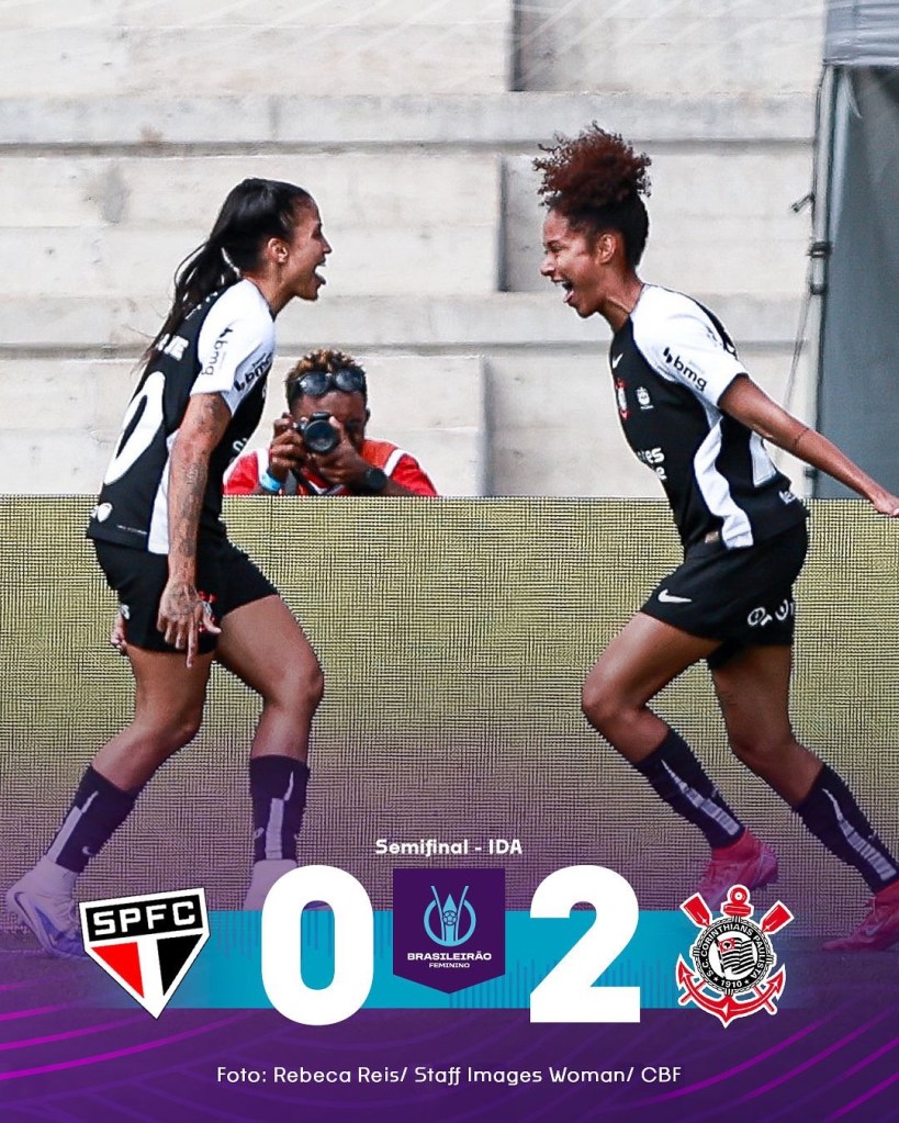 No Pacaembu, o Corinthians não vacilou, e mesmo como visitante, bateu o São Paulo. Com gols de Jaque, nos primeiros minutos do primeiro tempo, e golaço de Dayane Rodriguez, na reta final do segundo tempo, o Corinthians garantiu uma importante vantagem para o jogo de volta, e fica cada vez mais próxima da nona final consecutiva de Brasileirão Feminino.