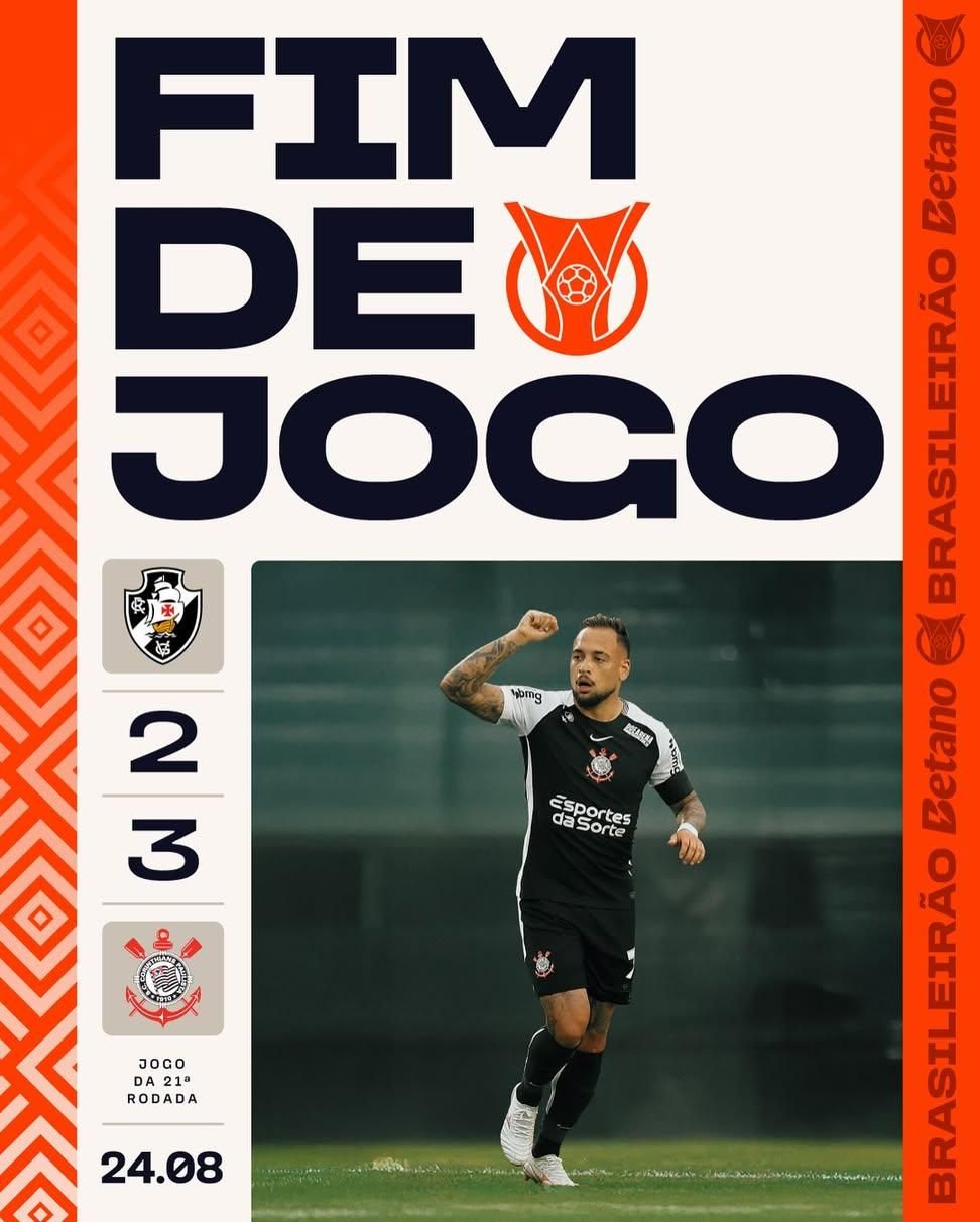 No São Januário, o Vasco voltou ao “normal” e perdeu para o Corinthians, que saiu de um jejum de 6 jogos sem vencer no Brasileirão.