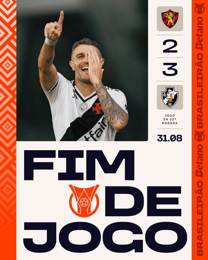 Na Ilha do Retiro, o Vasco não vacilou, bateu o lanterna Sport e saiu do Z4. O Leão, com apenas 10 pontos e 1 vitória, já é um “rebaixado virtual”, mesmo com quase 20 partidas a serem jogadas.