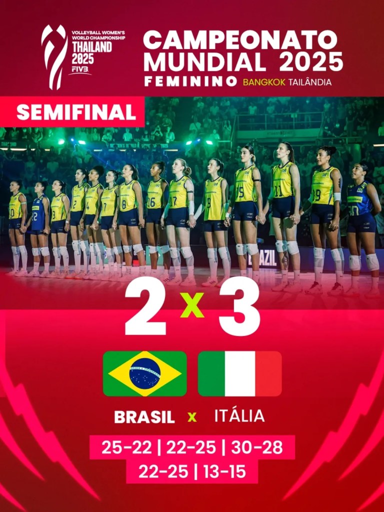 A dor da derrota às vezes cega, mas dessa vez, não podia ser assim. Apesar da Seleção cair nas Semifinais e ver o sonho de um título Mundial escapar novamente, o jogo contra a Poderosa Itália mostrou que temos uma seleção incrível e cheio de jogadoras incríveis. Por exemplo: Gabi e Rosamaria juntas somaram quase 50 pontos no jogo. Levamos a imbatível seleção italiana para o tie-break, e vimos o placar chegar em um 13×12. Chegamos a está com 2×1 no placar de sets…. Escapou, mas é isso. Amanhã é luta pelo bronze e elas irão lutar muito para manter o Brasil no pódio Mundial!