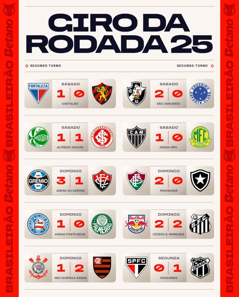 No Morumbis, o Ceará mostrou que adora aprontar contra o São Paulo e garantiu uma importante vitória para seguir sonhando com torneios internacionais em 2026. Já o São Paulo começa a se distanciar do G4, porém ainda vivo na luta por vaga na Liberta.