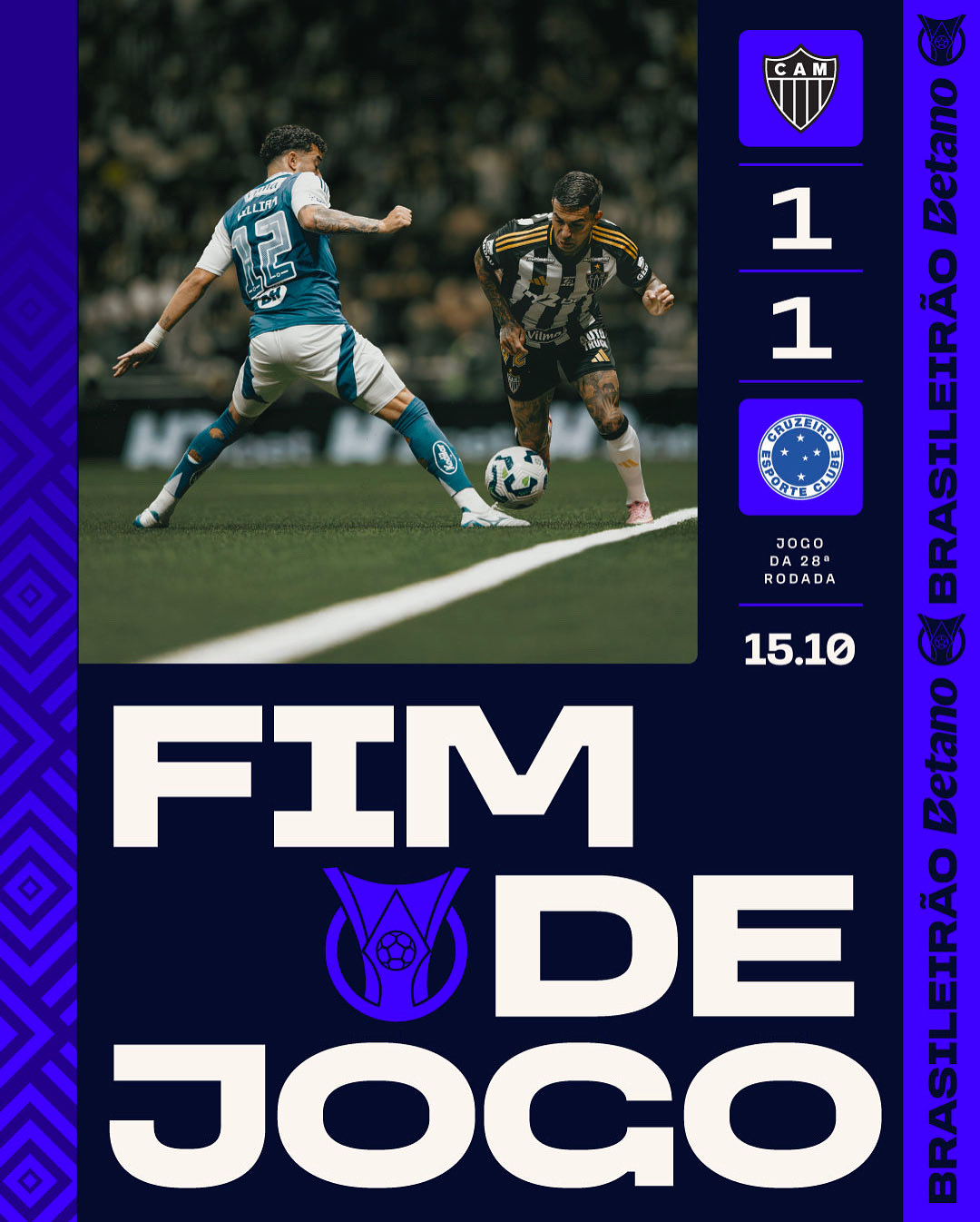 Na Arena MRV, Atlético Mineiro desperdiça o fato de jogar com um à mais, quase toda partida, e fica apenas no empate com o Cruzeiro. Apesar do empate suar vitorioso pelo o que foi o jogo, o resultado afastou a raposa dos líderes do Campeonato.