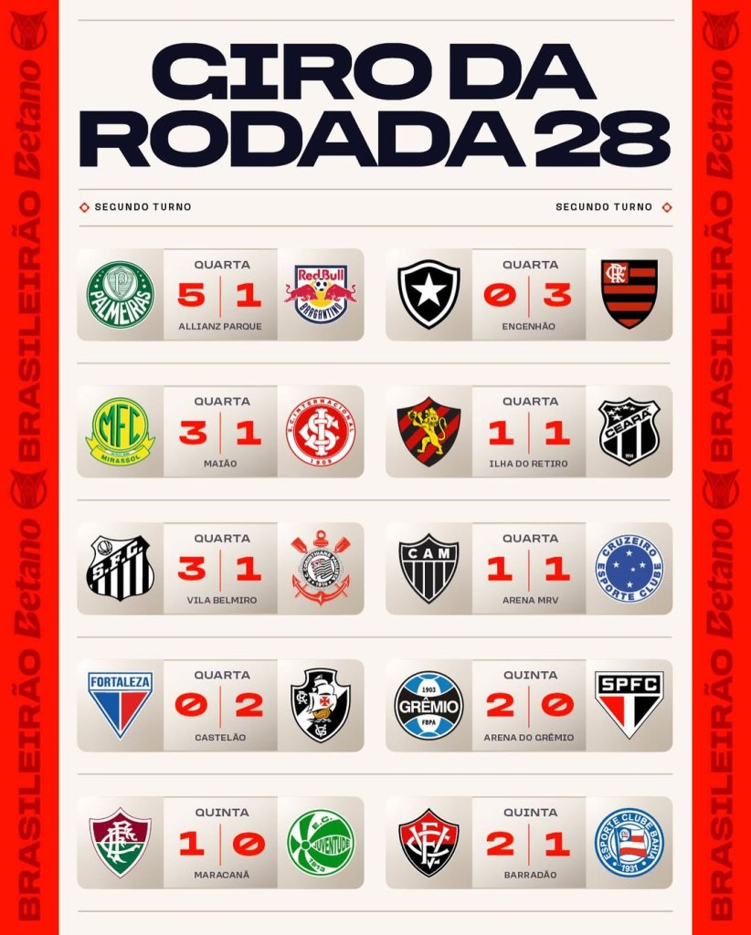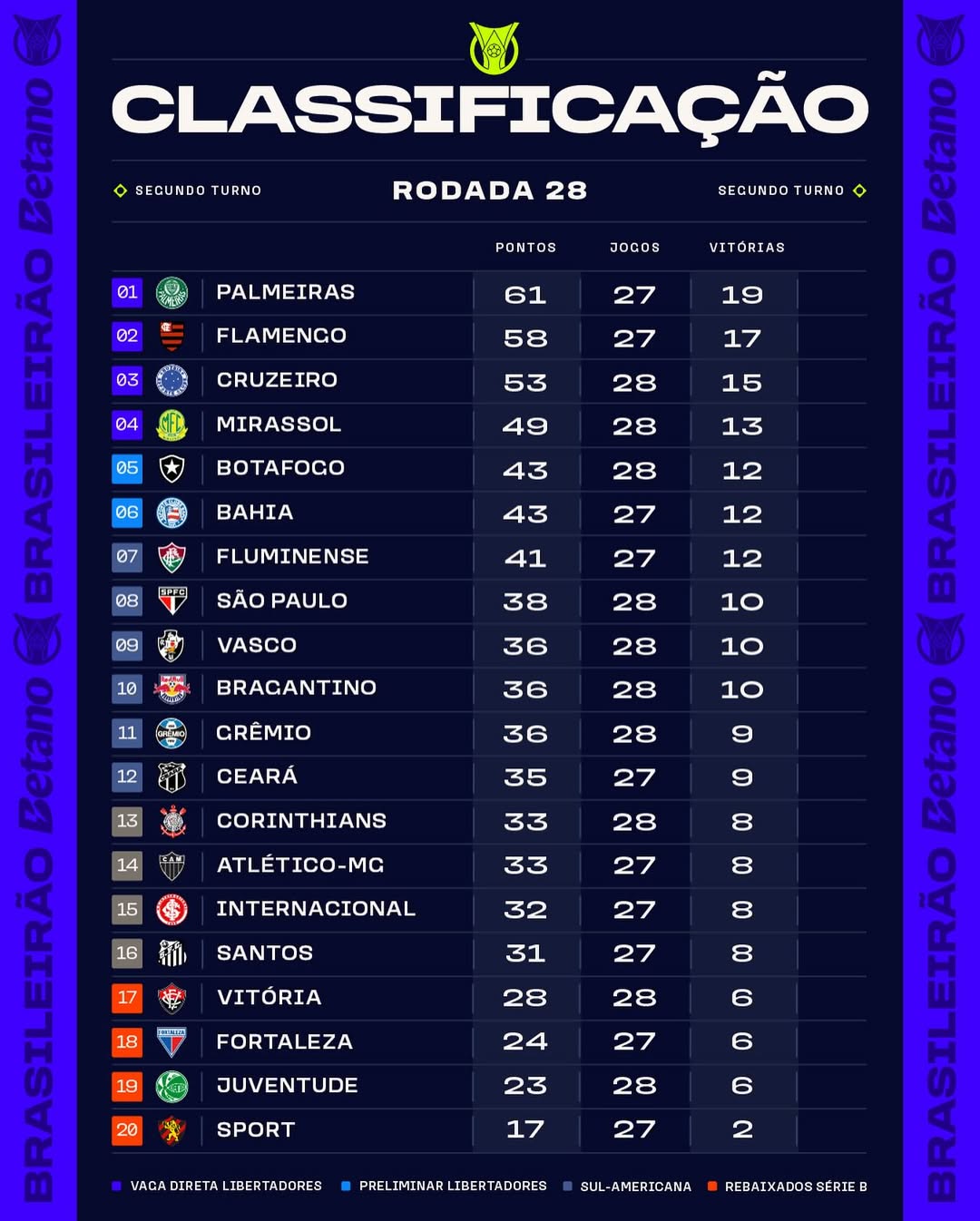 Palmeiras e Flamengo fazem sua parte e rodada 29 será decisiva!