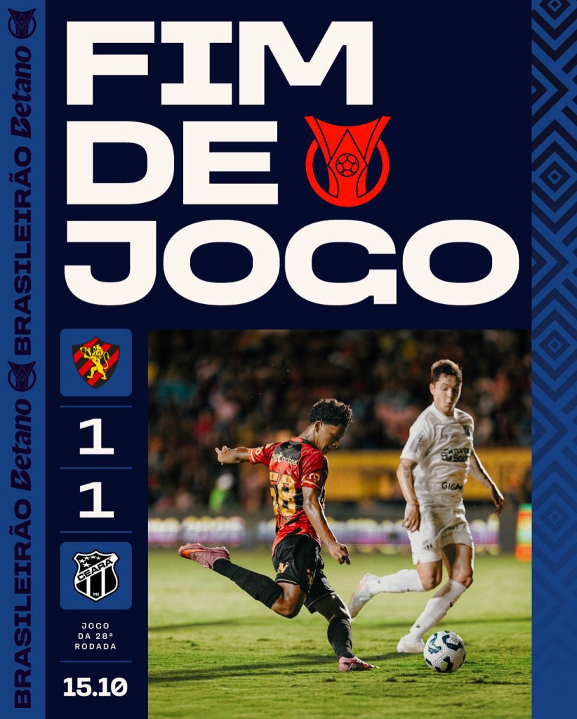 Na Ilha do Retiro, o Ceará até saiu na frente, mas viu o Sport arrancar um empate heroico. Resultado ruim para ambos. O Vozão segue apenas no meio de tabela, enquanto o Leão conta os dois para retornar à Série B.
