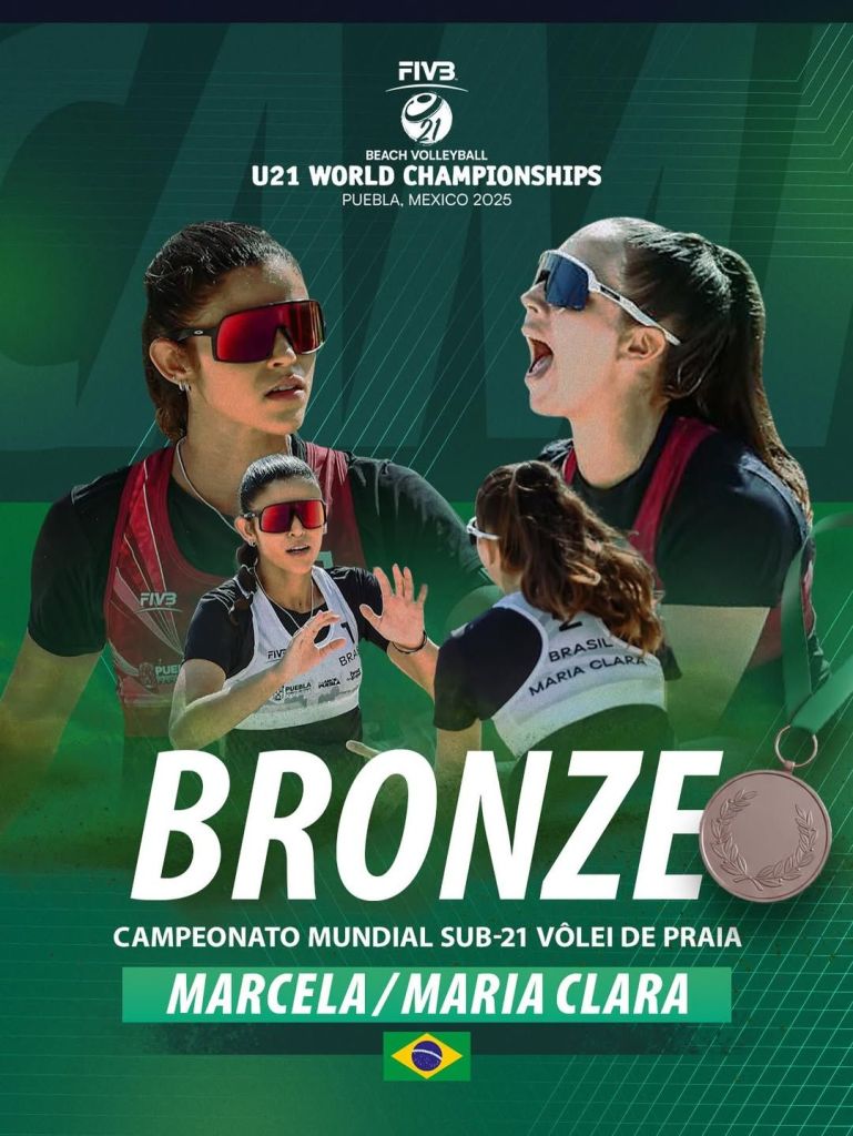 Em Puebla, no México, as craques do Vôlei de Praia, a paraibana Maria Clara, do BNB Clube, e a carioca Marcela, do Botafogo, conquistaram a medalha de bronze do Mundial Sub-21 de Vôlei de Praia.