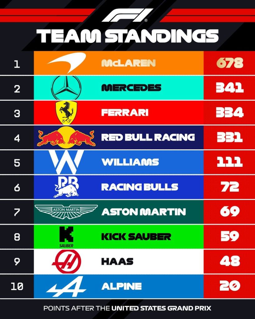Mais um fim de semana perfeito para Verstappen e péssimo para Piastri. O holandês somou todos os pontos possiveis, vencendo Sprint e Principal. Norris sofre com LeClerc, mas também ver distância para Piastri reduzir. Aliás, os pilotos da McLaren bateram na Sprint, o que fez Verstappen sorrir. Faltam 5 GP’s e o campeonato está aberto.
