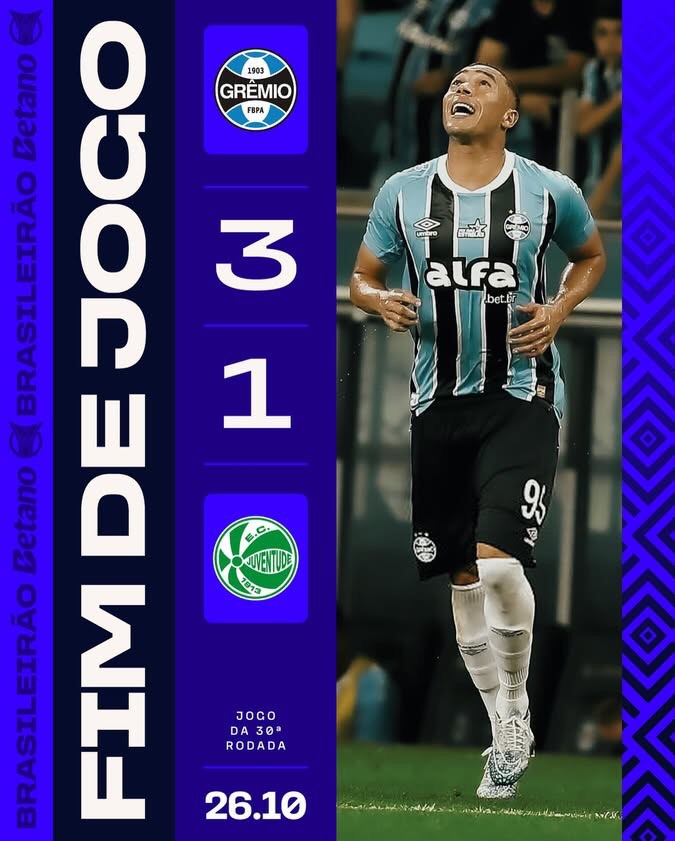 Carlos Vinicius marca hat-trick e Grêmio vence Juventude. Tricolor respira, alviverde se complica.
