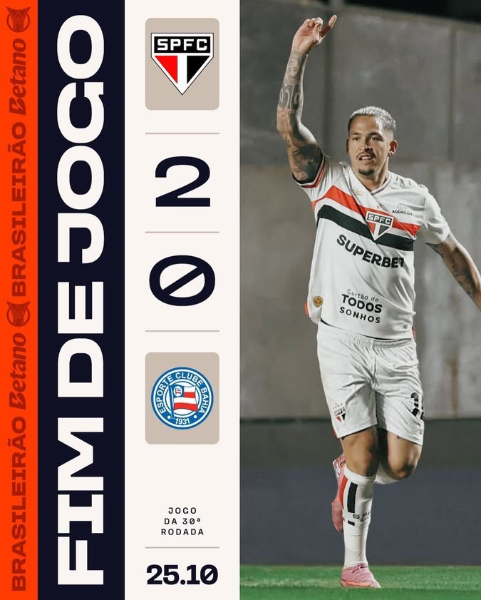 No Morumbis, São Paulo vence Bahia em confronto direto pelo G6.