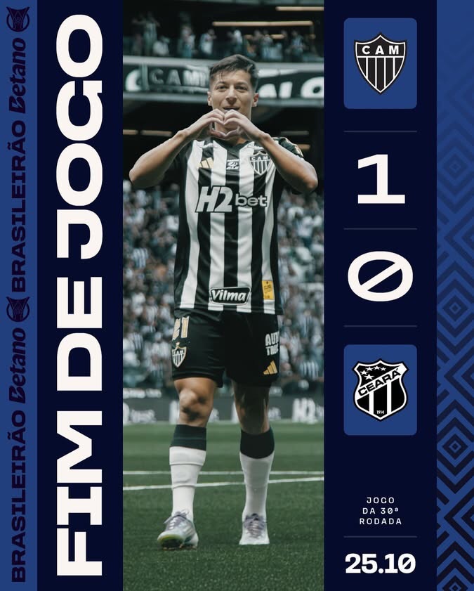 Com gol aos 20 segundos, Atlético Mineiro bate Ceará e respira na luta contra a degola.