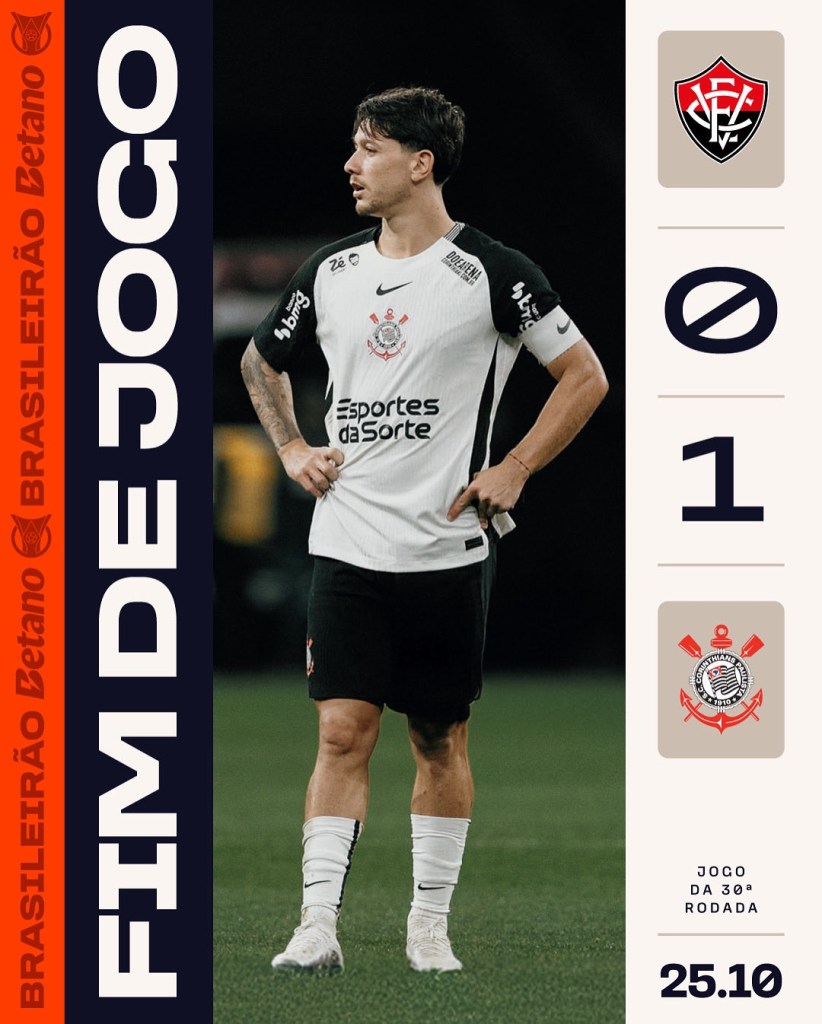 Corinthians vence Vitória para alegria de todo mundo que luta contra rebaixamento.