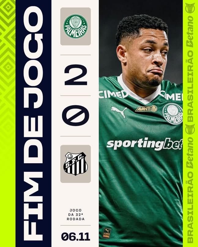 No Allianz Parque, o Palmeiras amassou o Santos, mas viu o goleiro Brazão catar quase tudo. A dupla Flaco-Roque resolveu, com direito à mais dois gols do Tigrinho, que segue vivo na briga pela artilharia do campeonato. O resultado manteve o Palmeiras na liderança e recolocou o Santos no Z4. Neymar não jogou.