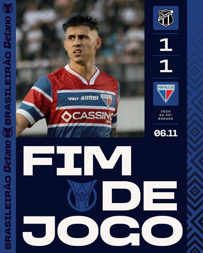 No Castelão, Fortaleza sai na frente no primeiro tempo, mas permite o empate do Ceará na reta final. O Vozão segue no meio de tabela em zona de Sulamericana, enquanto o Laion segue no Z4 e preocupado com o rebaixamento.