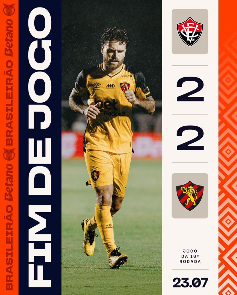 No Barradão, o fim do jogo foi animadinho. Até os 43 minutos do segundo tempo, 1×0 para o Vitória, com gol de Erick. Dali até os 53 minutos do segundo tempo, dois gols de Romarinho para o Sport, e um de Renzo para o Vitória. Sim, 2×2. O Leão baiano segue próximo do Z4, mas fora dele, enquanto o Leão de Pernambuco engata mais um jogo sem vencer no Brasileirão. 4 pontos em 14 jogos.