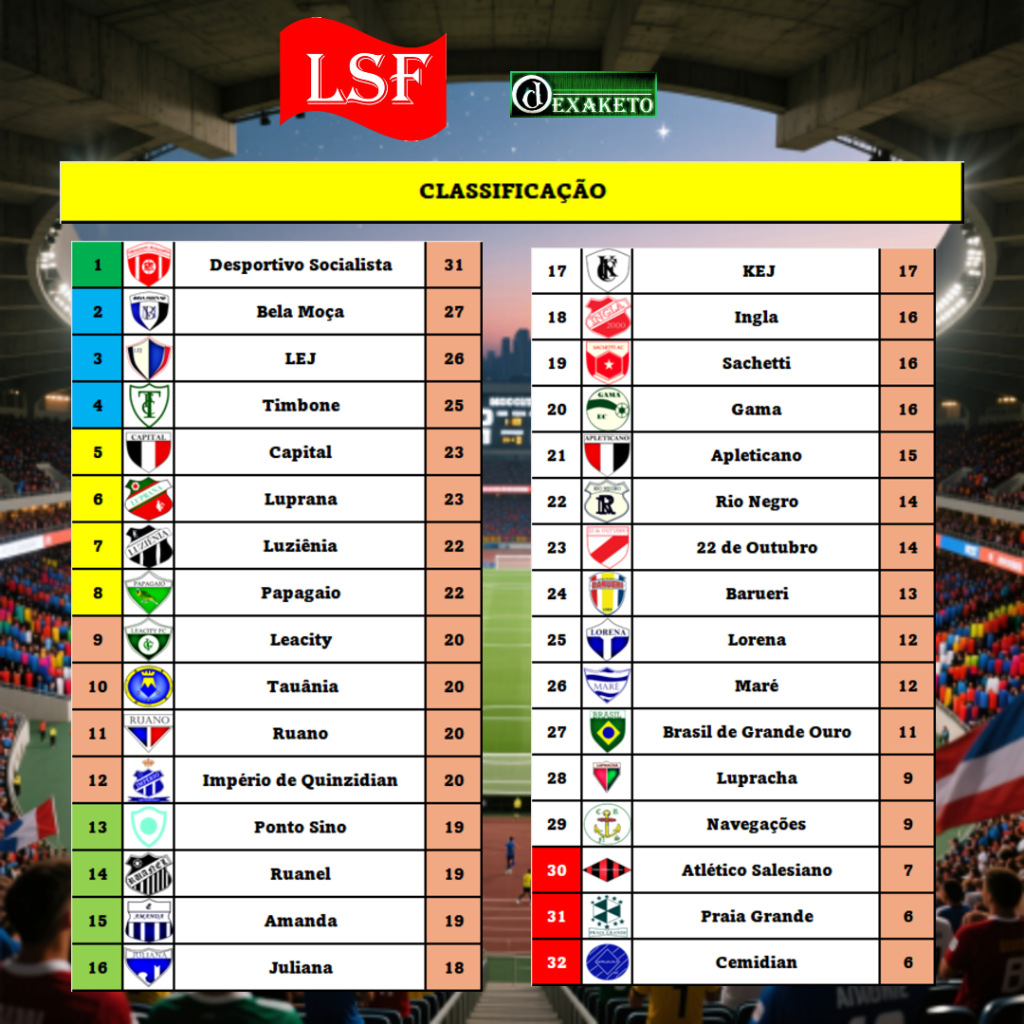 A Classificação não mudou muito, o Desportivo segue líder com sobras, e com o Bloco 1 imutável. Entretanto, os 8 gols tomado pelo Cemidian o jogou na lanterna, para alívio do Praia Grande.