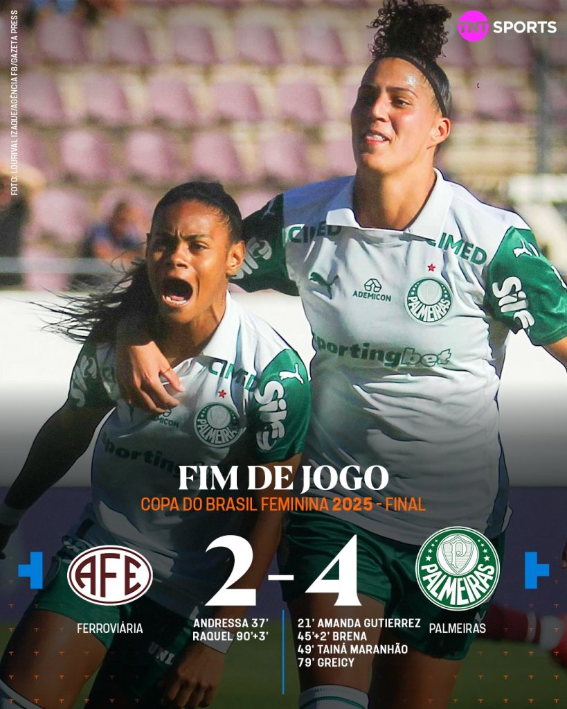 Os gols do título do verdão foram marcados por Amanda Gutierres, Brena, Tainá Maranhão e Greicy