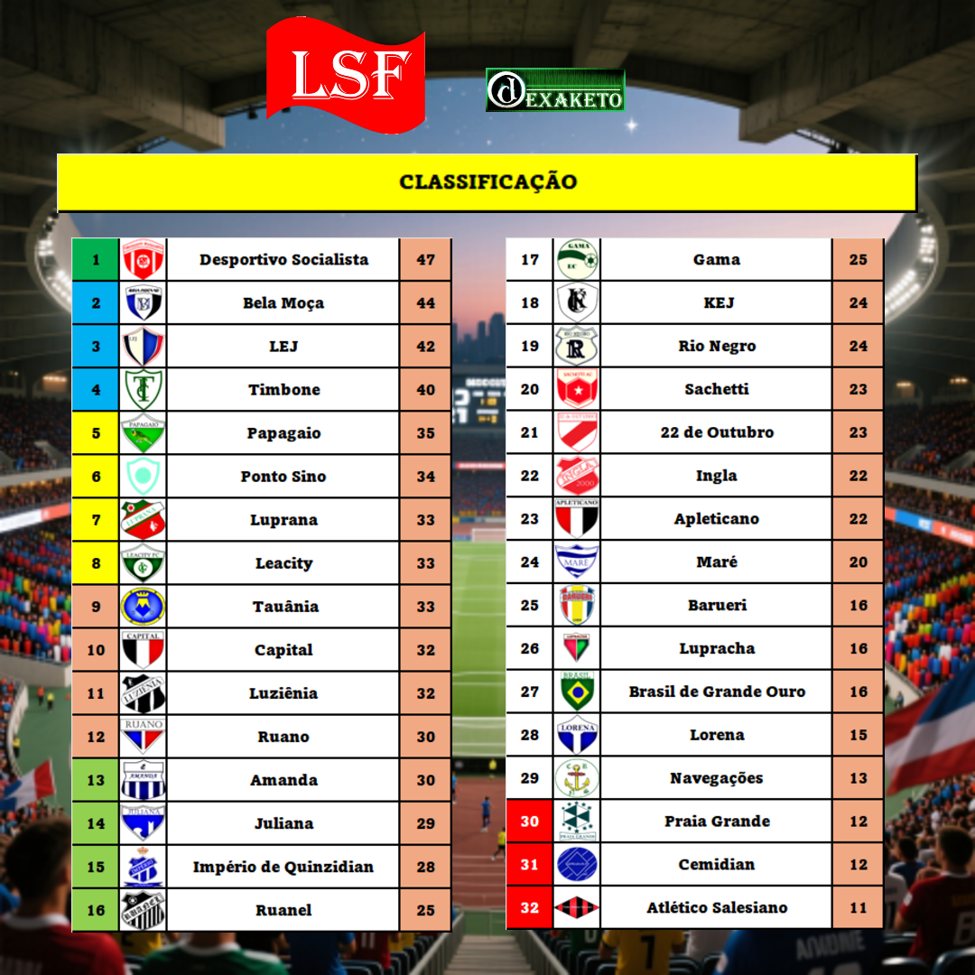 A Classificação mantém o padrão das rodadas anteriores. Desportivo líder, a turma do Bloco 1 bem definida, um bololô entre os times do Bloco 2 e 3, e a luta contra o rebaixamento bem definida.