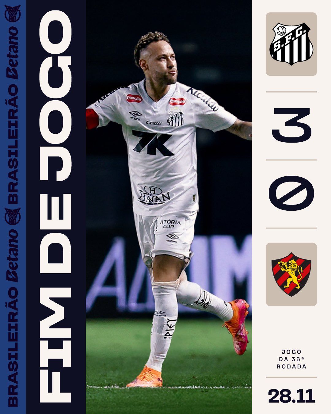 Na Vila Belmiro, em bom jogo de Neymar, Santos vence Sport e respira na rodada. Leão comprovando a cada rodada que não era para está na Série A este ano.
