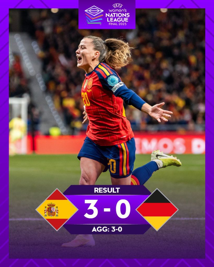 Após o empate no jogo de ida na Alemanha, o jogo da volta em Madrid, foi com direito à show de Claudia Pina, que além de marcar duas vezes, fez de seu segundo gol, uma obra de arte. A Espanha carimbou seu segundo título em duas edições do torneio, ratificando seu momento histórico no Futebol Feminino.