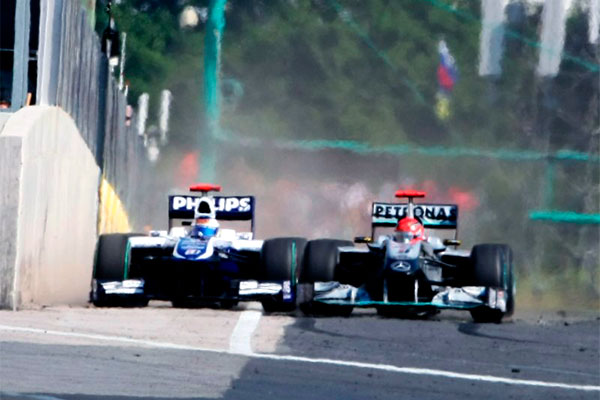 Depois de anos tendo que ceder o lugar, Rubens Barrichello viu o destino lhe dar uma chance única de “limpar sua história”. De 2000 à 2005, o Rubinho se viu como segundo piloto da Ferrari, dividindo equipe com a lenda Michael Schumacher. Em determinados momentos, como no GP da Áustria em 2002, Rubens precisou ceder sua posição para Schumacher, que também não gostou da ordem externa da Ferrari, porém ambos executaram, um dos momentos mais vergonhosos da história da Formula 1. Entretanto, em 2010, quando Michael Schumacher estava na Mercedes, e Rubens Barrichello, na Williams, com ambos já distante das primeiras posições, o destino permitiu que existisse um “pega” entre os antigos companheiros. Com o carro mais inteiro, Rubinho teve a chance de deixar Schumacher para trás, porém o heptacampeão mundial, não iria permitir fácil a ultrapassagem , e jogou Rubens no muro, todavia com a vontade que estava, nem o muro evitou de Rubinho lavar a alma.