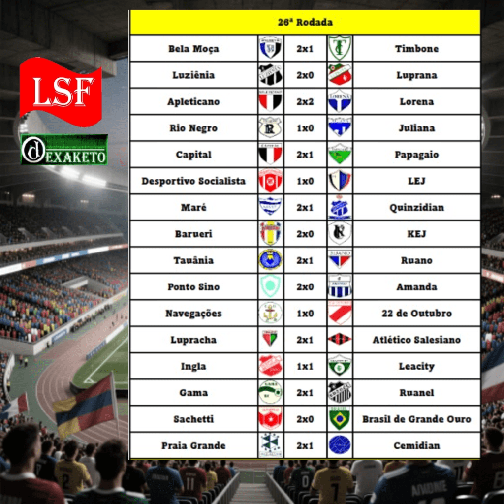 O jogo da rodada não podia ser outro! Desportivo Socialista e LEJ, líder e vice-líder, se enfrentaram, valendo a ponta da Taça Tiago Eleno. O Revolucionários do Futebol tremia com os mais 100 mil torcedores. O LEJ até foi valente, por alguns instantes, chegou a fazer o Desportivo ficar na roda, entretanto, no momento de domínio, o Desportivo foi letal. Com um golaço de Edmilson, o líder se manteve líder, ampliou a distância para o LEJ e começa a contar as rodadas para ser o Campeão. Apesar da derrota, o LEJ segue vivo.