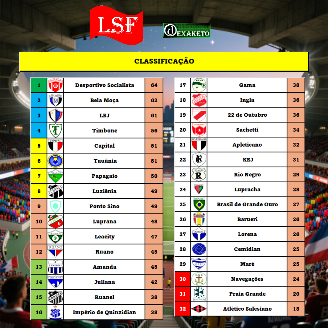 A Classificação segue com disputa em todas as frentes. Vale o destaque para a insana luta contra o rebaixamento.