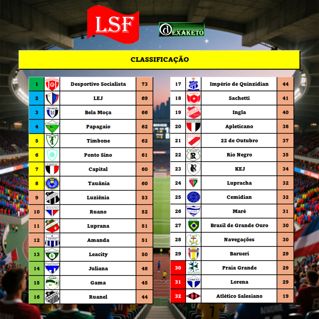 O Timbone até goleou o Campeão Desportivo Socialista, que foi a campo com o time Sub-20, entretanto, com a vitória do Papagaio sobre o Luziênia foi o time de Praia Grande quem festejou a vaga direta para a Fase de Grupos da “Giuseppe”. O Ruanel e o Império Quinzidian empataram em pontos, mas pelo número de vitórias, o alvinegro superou o time do samba, garantindo a última vaga na Giuseppe. Enquanto isso, na luta contra a degola, todo mundo venceu, decretando o rebaixamento de quem entrou no Z3 na penúltima rodada. E assim, descem o Praia Grande, que tinha acabado de subir, e surpreendentemente, o Lorena, que falhou nas rodadas que não podia. Aliás, palmas para o Cemidian, que fracassou na primeira parte com os “jogadores de nome” e conseguiu se salvar com sua garotada.