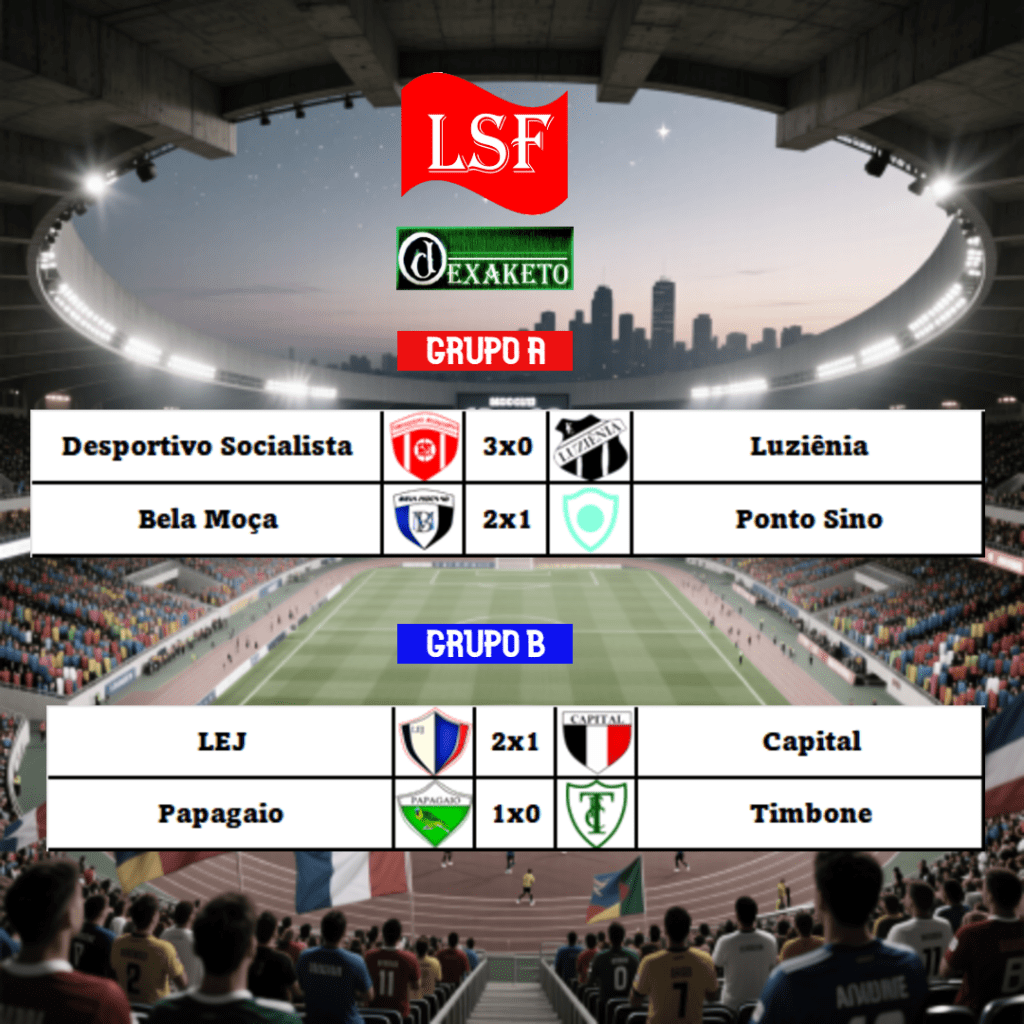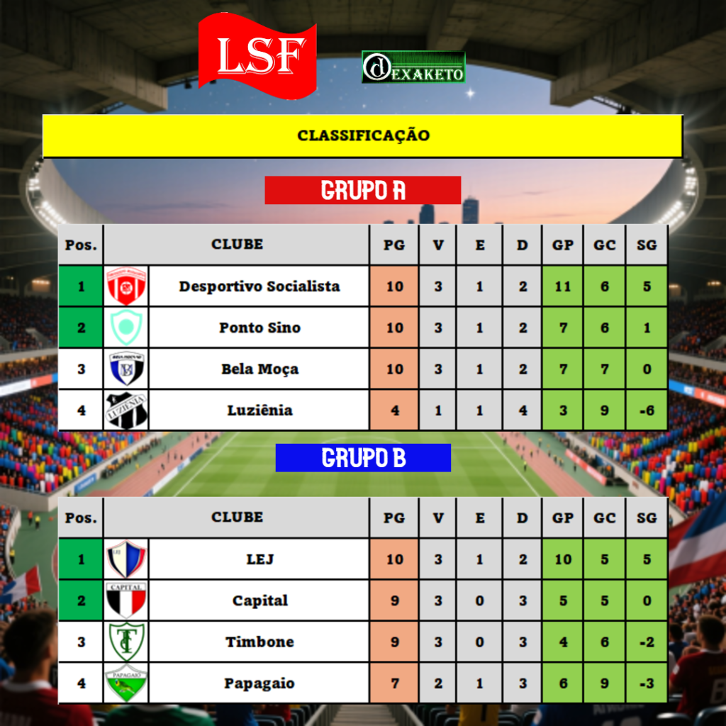 E assim, definimos Desportivo e Ponto Sino como os classificados do Grupo A, enquanto que LEJ e Capital são os classificados do Grupo B.