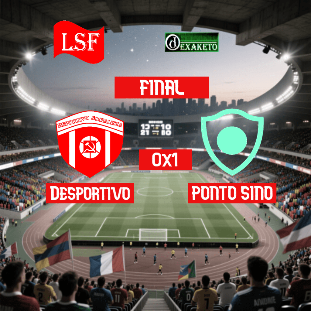 Chegamos ao Grande dia! A Arena Nacional estava dividida entre o vermelho do Desportivo Socialista e o azul claro e branco do Ponto Sino. Os torcedores fizeram sua parte. Estádio empoderado, com ambas torcidas cantando e desejando o título. Na Grande Final, ninguém tinha vantagem alguma, empatou, era prorrogação em Gol de Ouro, ou pênaltis, caso após 2 tempos de apenas 10 minutos, nada acontecesse.
