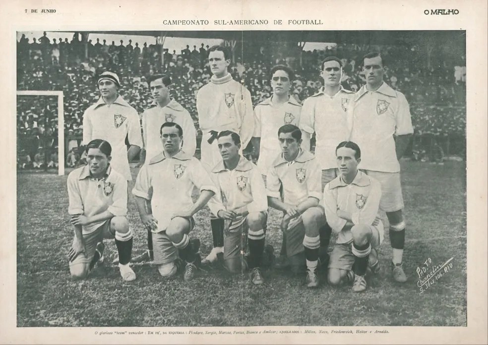 Em 29 de Maio de 1919, a Seleção Brasileira conquistou o seu primeiro título, foi o Sul-americano, equivalente à atual Copa América. Era apenas a terceira edição do torneio, e a primeira sediada no Brasil. Com o torneio ocorrendo no moderníssimo Estádio das Laranjeiras, o Brasil foi campeão invicto.