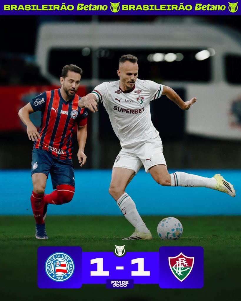 Em Salvador, o Fluminense parecia que ia ganhar, mas o Bahia arrancou o empate e ambas equipes seguem invictas.