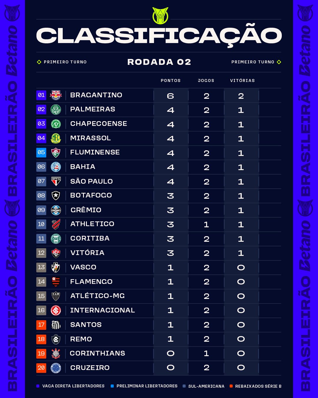 Jogando em casa, o Red Bull Bragantino bateu o Atlético Mineiro e entrou na 2ª Rodada como o único a somar 6 pontos. Segue o líder!