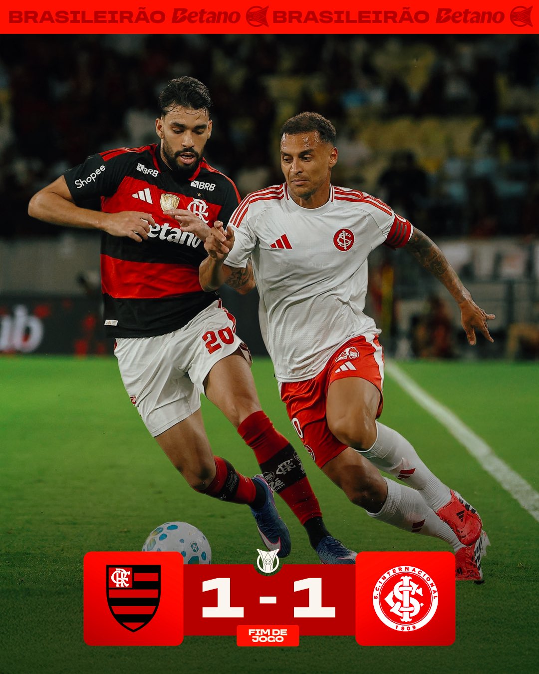 No Maracanã, Flamengo e Internacional erram em momentos cruciais e ambos saem sem a vitória.