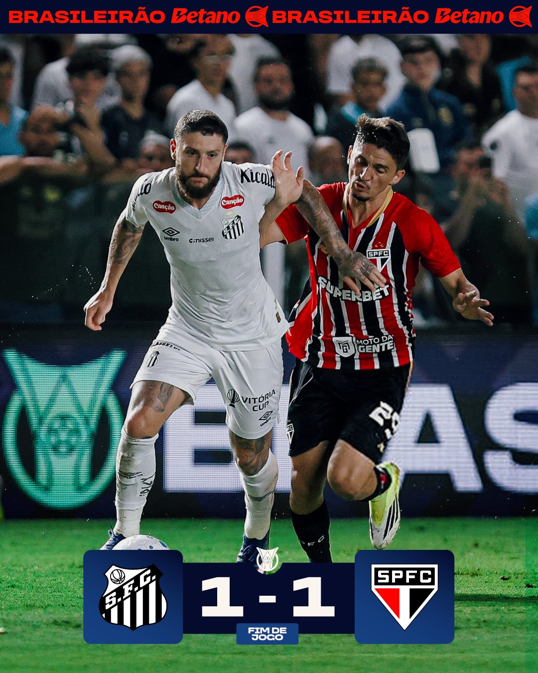 Na Vila Belmiro, o Santos até saiu na frente, mas o Caleri garantiu o empate no San-São.