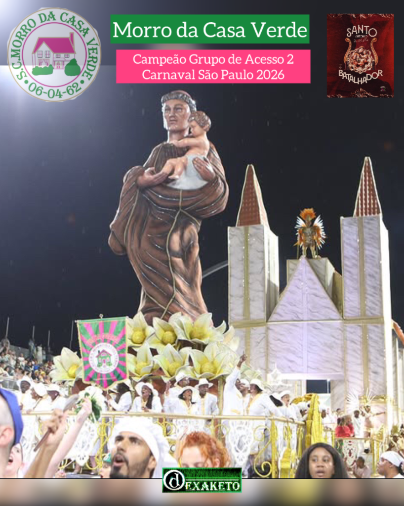 Com 269,8 pontos, a Morro da Casa Verde garantiu o título do Grupo de Acesso 2 do Carnaval Paulistano 2026.